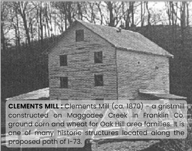 A similar effort to identify historic significance for the Old German Baptist (“Dunkard”) dairy farming settlement in Franklin County fell through, however. The approved path for I-73 actually would have paved over the group’s outdoor baptismal site on the banks of Little Ellie Creek, where they’ve been baptizing since 1965. FHWA refused to allow VAR’s analysis of the historic significance of the German Baptist settlement, as prepared by Harry Reem, to be submitted to the Keeper of the National Register.